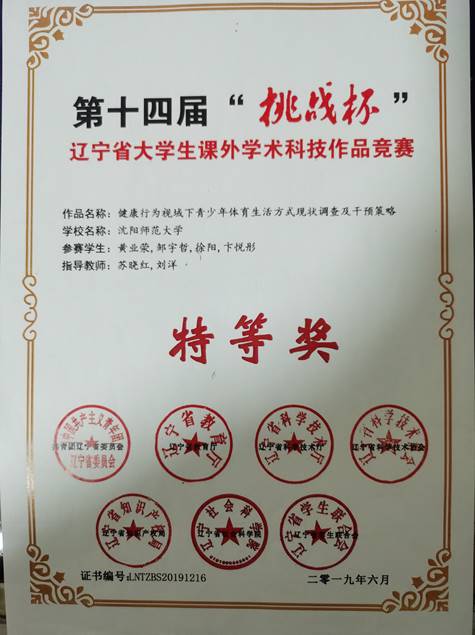 由公司教师苏晓红、刘洋指导,黄业荧负责的《健康行为视域下青少年体育生活方式现状调查及干预策略》项目荣获省级特等奖,同时推报国赛获三等奖殊荣。