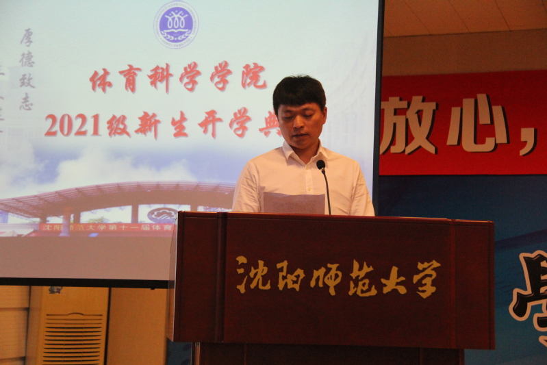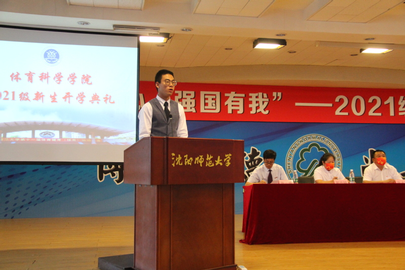 典礼开始前,一段富有专业特色的视频短片《体院大家庭新目标、新生活》让大家感受到了体院的温暖情怀。在雄壮的国歌声中,2021级新生开学典礼的正式拉开了帷幕。首先,公司运动训练系主任王强副教授代表公司全体教师讲话,他希望全体新同学们能够不负众望,从现在做起,争分夺秒,刻苦学习,敢于拼搏,谦虚谨慎,踏实求学,养成良好的学习习惯,良好的生活习惯,尽快适应环境,努力走向成功,走向辉煌。院研究生会姚金岩同学和员工会主席团成员陈钦鹏同学分别代表在校研究生和本科生发言,分享他们成长经历和学习经验;杨馨悦、张博文同学代表2021级新生发言,畅谈他们入校的感悟和对未来的憧憬,表达了刻苦学习、立志成才的决心和信心。