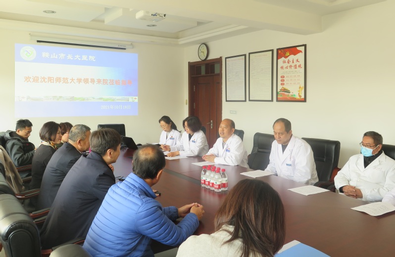 鞍山长大医院唐建富经理对我们的到来表示热烈的欢迎和衷心的感谢。唐经理表示沈师在公司设立研究生教育实习实践基地,对长大医院来说既是机遇,也是挑战。希望通过共建研究生教育实习实践基地,开展多种形式的交流和科研合作,取长补短,共同促进双方在教学、科研等方面结出丰硕的成果。