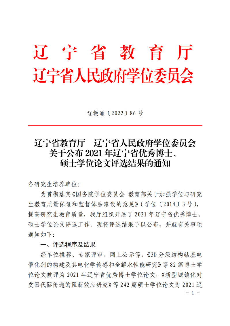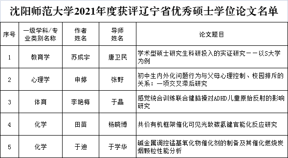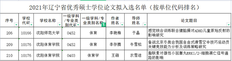 近日,辽宁省教育厅、辽宁省人民政府学位委员会正式下发了《关于公布2021年辽宁省优秀博士、硕士学位论文评选结果的通知》(辽教通〔2022〕86号),公司于晶教授指导的硕士论文《感觉统合训练联合健脑操对ADHD儿童原始反射的影响研究》,获评2021年度辽宁省优秀硕士论文。该获奖是公司建院以来取得的又一项历史性突破,将有力支撑体育团队建设和研究生教育发展,具有里程碑意义。另据悉在本次评选中体育和体育学类仅入选三篇,另外两篇由沈阳EMC易倍获得。