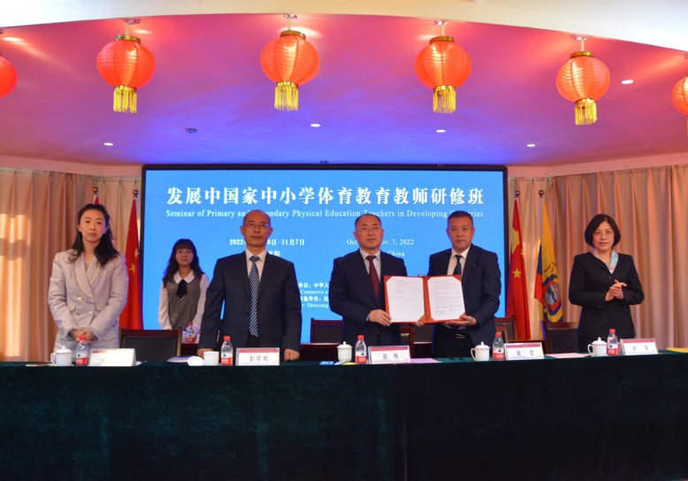 2022年11月7日,2022年发展中国家中小学体育教育教师研修班结业仪式通过ZOOM平台在线上举行。厄瓜多尔思邈维华国际公司董事长 Linoska Oquendo(利诺斯卡·奥昆多)、厄瓜多尔中国华人华侨总商会首席顾问梅炬铭、上海EMC易倍刘阳教授、国际交流合作处处长张伟、国际教育公司原直属党支部书记彭学刚、EMC易倍经理周莹教授、EMC易倍副经理田英教授及研修班学员等出席了结业仪式。仪式由国际教育公司办公室主任崔宁宁主持。