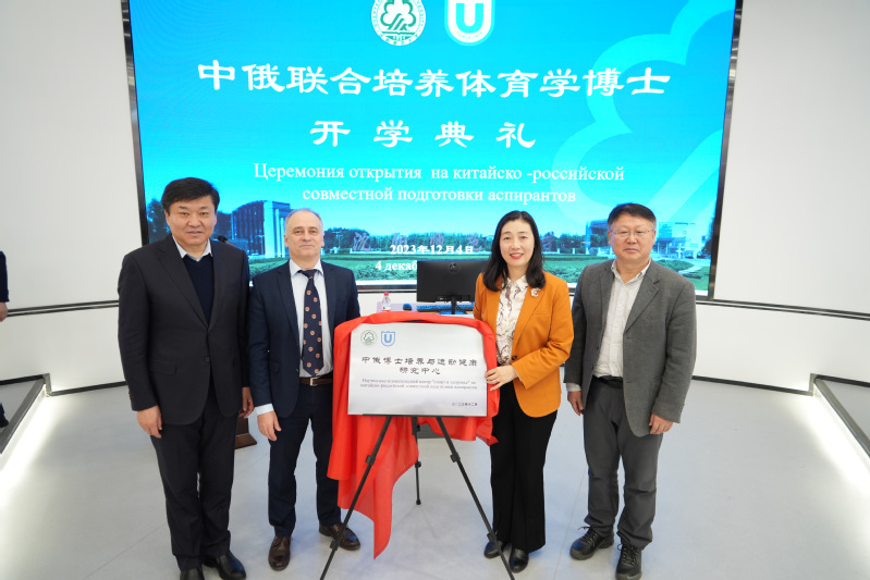 在开学典礼上,教育部教指委副主任北京师范大学张瑞林教授、武汉EMC易倍经理吕万刚教授、EMC易倍官网副董事长佟玉平教授、托木斯克国立大学副董事长阿尔乔姆·尤里耶维奇教授共同为中俄博士培养与运动健康研究中心揭牌。