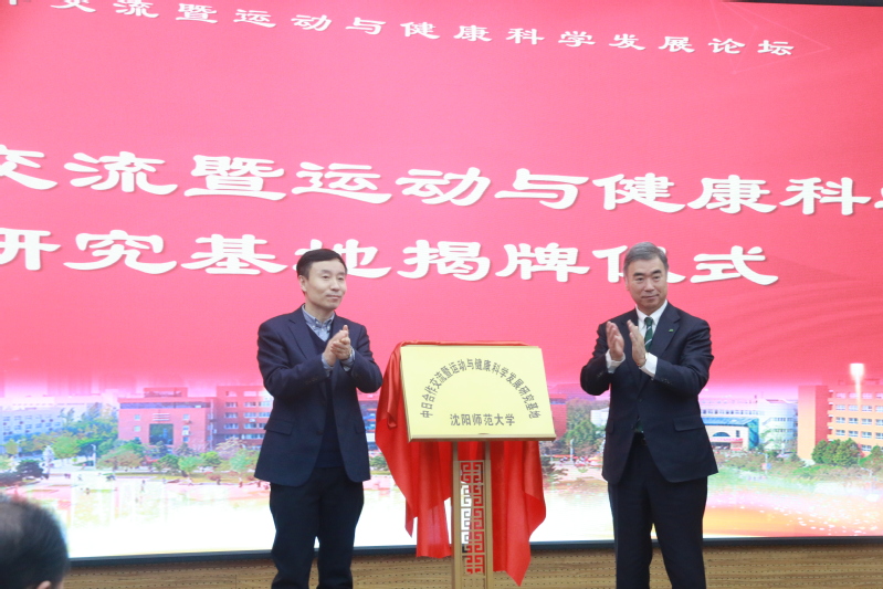 在开幕式上,赵礼强副董事长、高桥仁董事长共同为“中日合作交流暨运动科学与健康发展研究基地”揭牌。