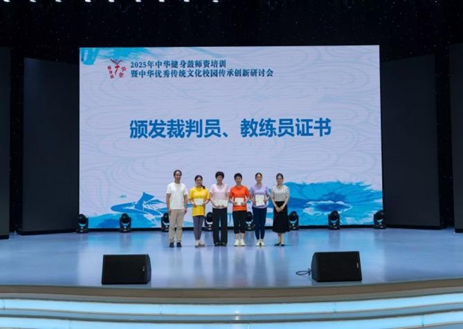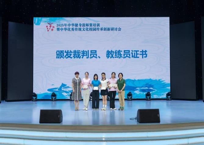 王蒙、杨雨霖二位教师参与入门套路技术学练板块,并最终通过组委会对学员们的理论考核与技能展演考核,获得了“中华健身鼓”教练员、裁判员证书。