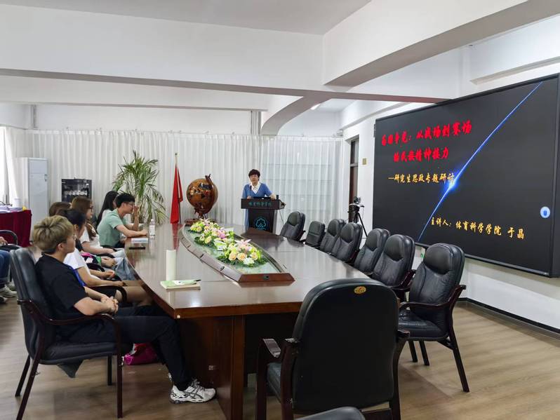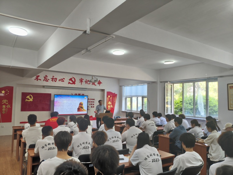 于晶经理以《为国争光:从战场到赛场的民族精神接力》为题,以一段抗美援朝老兵参加杭州亚运会开幕式的视频为切入,围绕“战场”、“赛场”、“家国情怀”三个方面进行了深入浅出的讲解。她指出,视频中,老兵们个个身穿抗美援朝时的服装,虽然都是90多岁的老人,但看起来个个精神矍铄。老兵们来到亚运会会场,是精神的传承,更是一种精神的交接。他们把强国复兴的接力棒传递给了新时代英雄健儿们。从战场到赛场,虽然场地不同,但传承的精神无他,践行中国精神,复兴强国有我,为了祖国的体育事业、为了至高无上的国家荣誉,希望大家顽强拼搏、无所畏惧,在强国复兴的道路上都能洒下独属于自己的一滴汗水。
